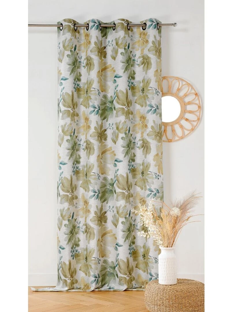 Rideau tamisant aux fleurs aquarellées Vert