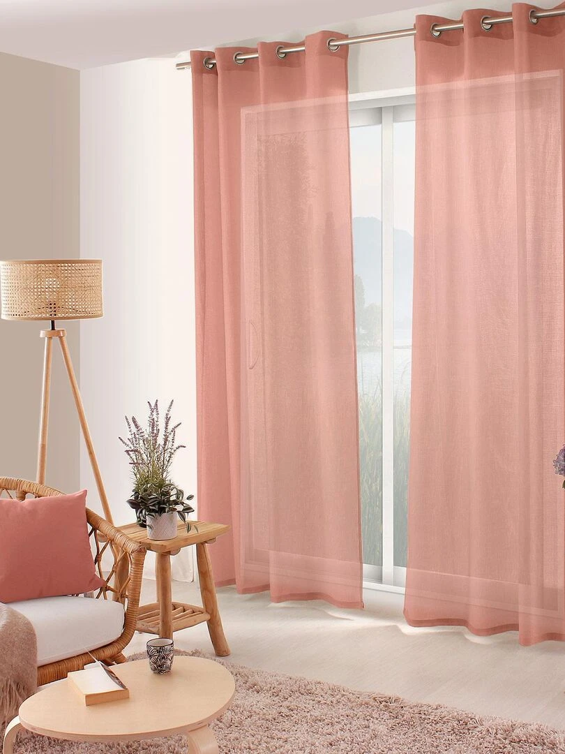 Voilage uni ajouré à œillets Rose clair