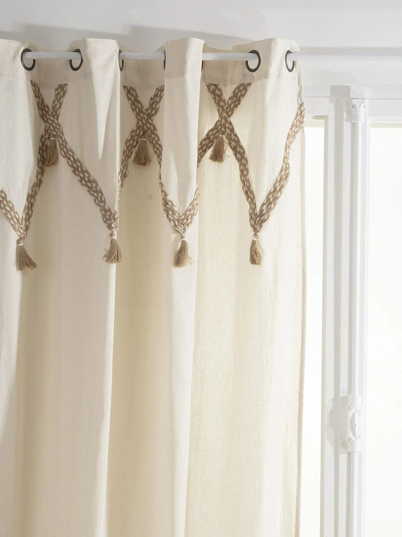 Voilage brodé motif éthnique Beige