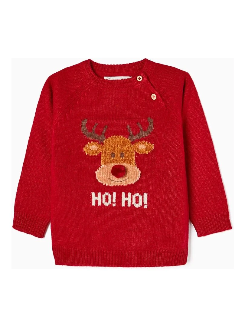 Pull Noël avec Pompon Bébé 'Renne' NOËL Rouge