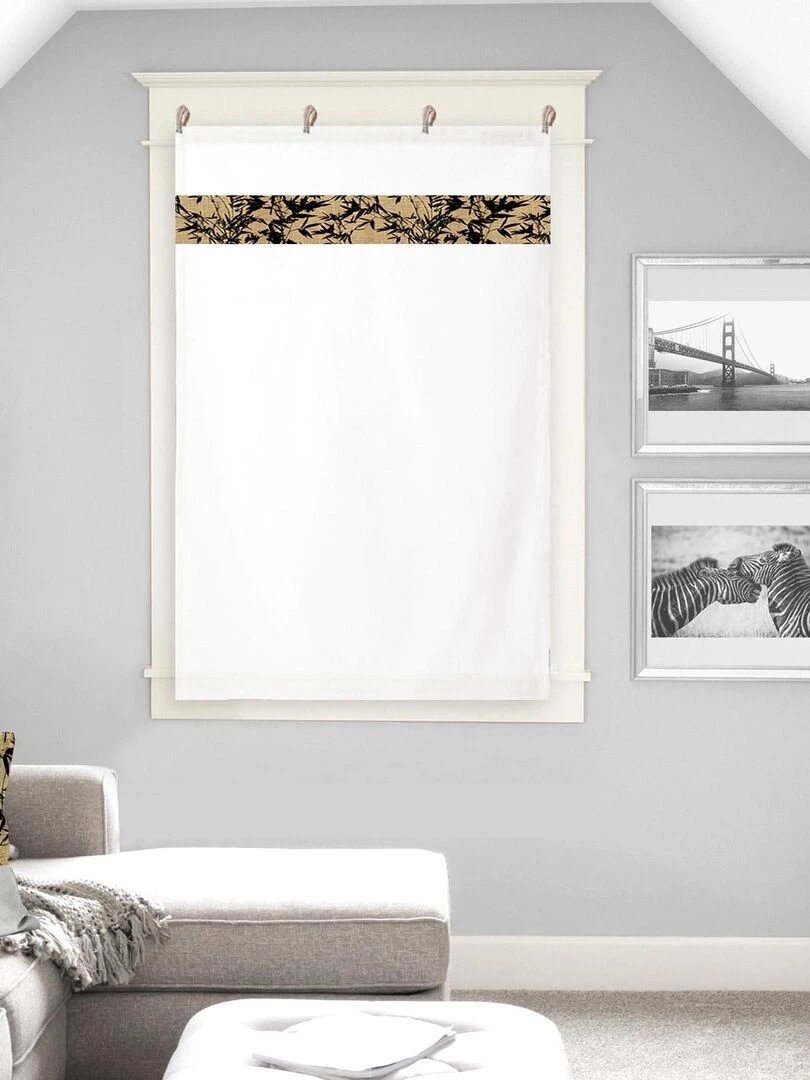 Vitrage droit en jute imprimé Blanc