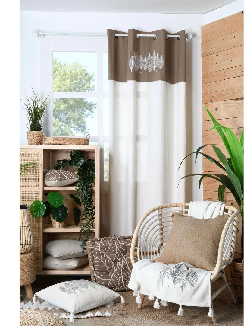 Rideau tamisant et brodé au style nature Taupe