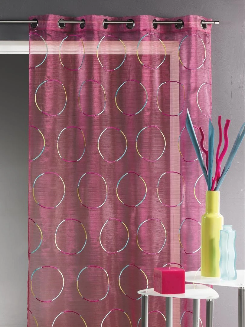 Voilage en Organza avec cercles brodés Rose fushia