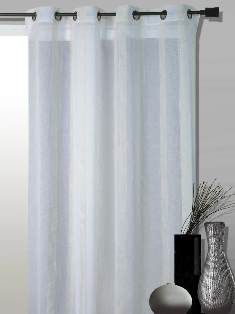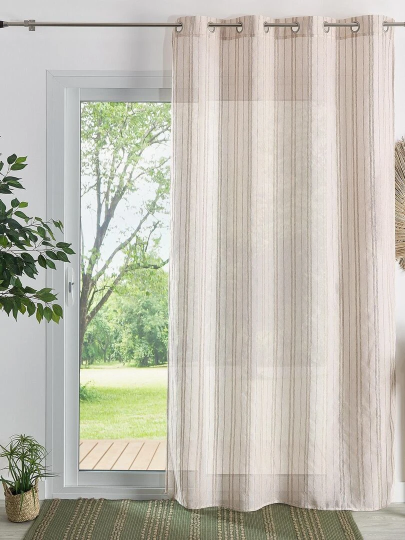 Voilage tamisant à rayures au style lin naturel Beige clair