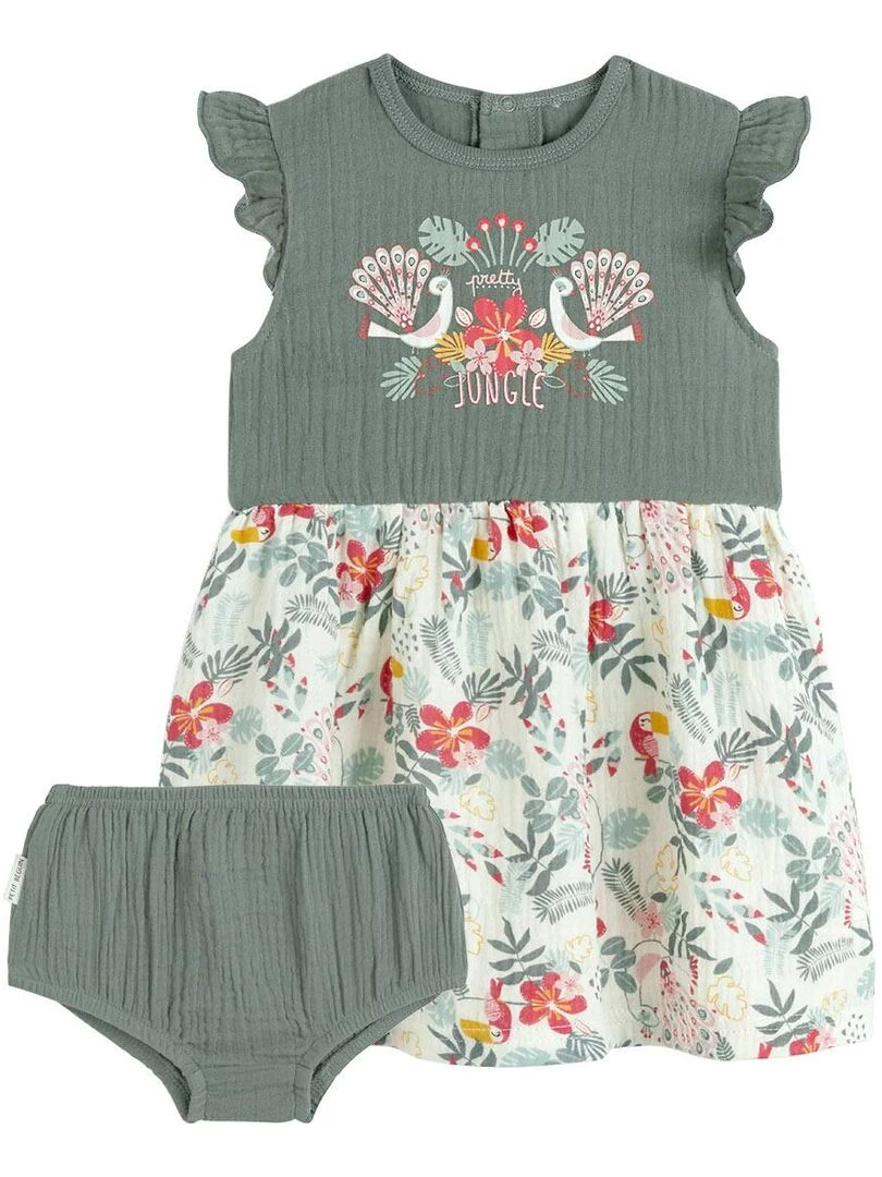 Robe bébé et culotte en gaze de coton Pretty Jungle Vert