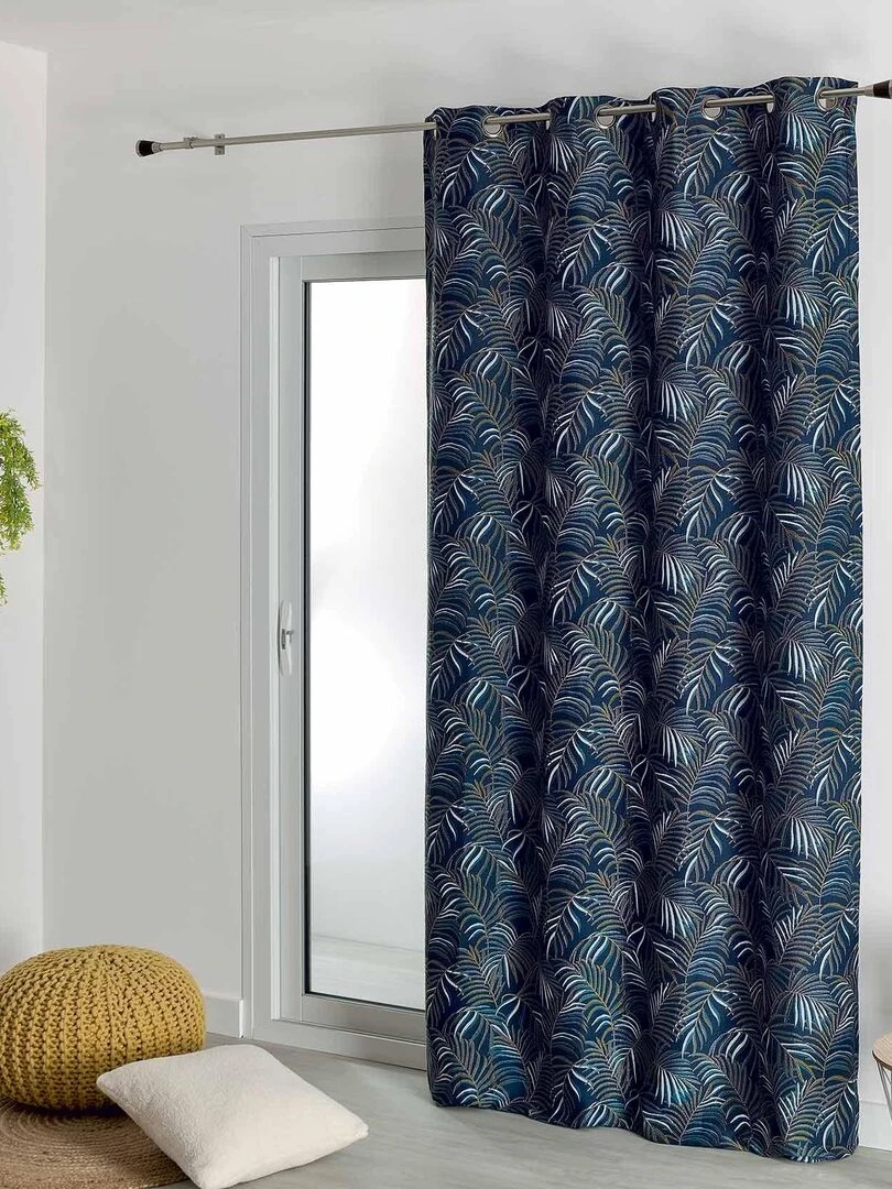 Rideau à jacquard esprit exotique Bleu