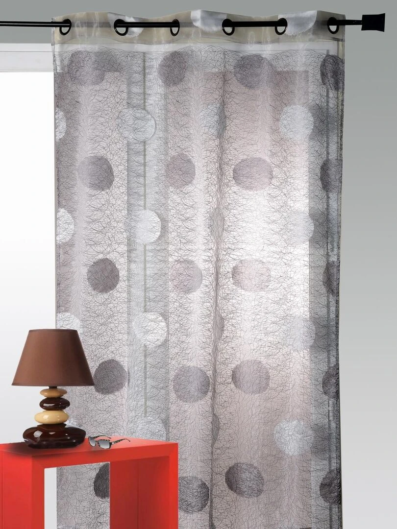 Voilage en Organza Jacquard brodé motif gros rond Gris clair