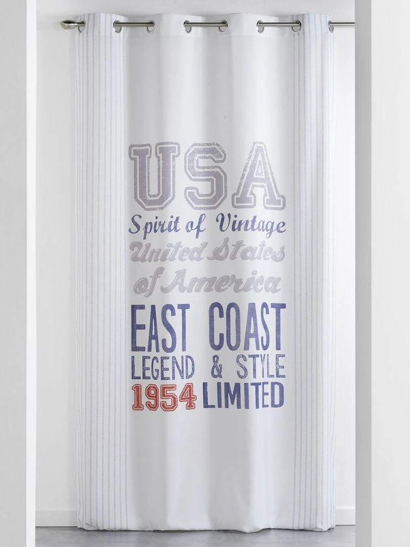 Rideau tamisant au top rayé avec pompons Blanc