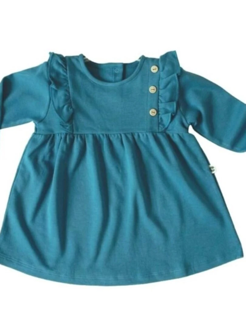 Robe Bébé à Volant en Coton Pima Bio Bleu Vert