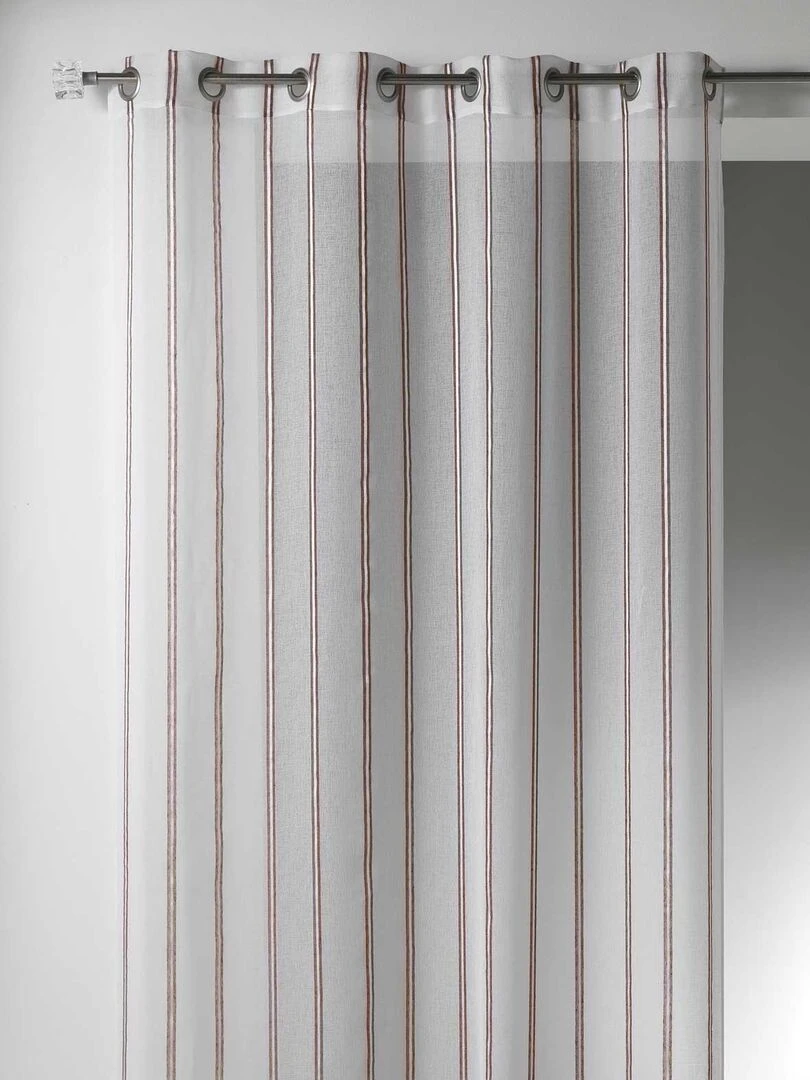 Voilage en Etamine à Rayures Verticales Taupe