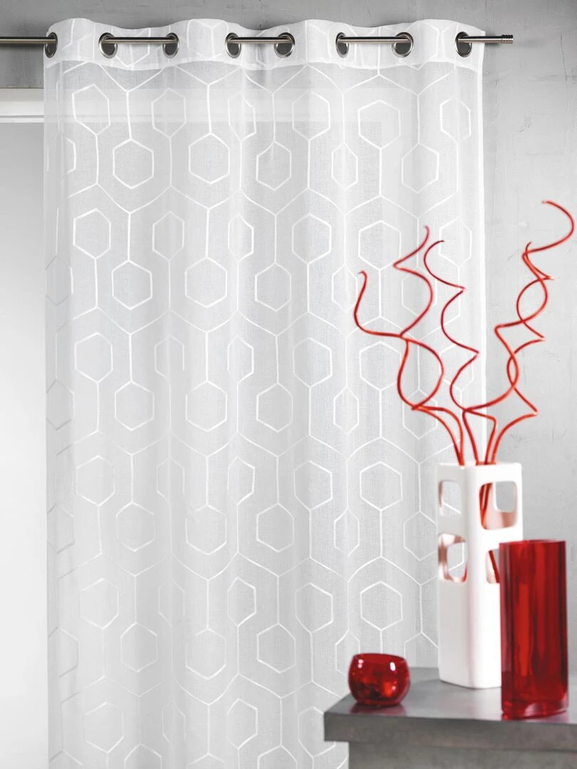 Voilage en étamine brodée imprimés "losange" Blanc