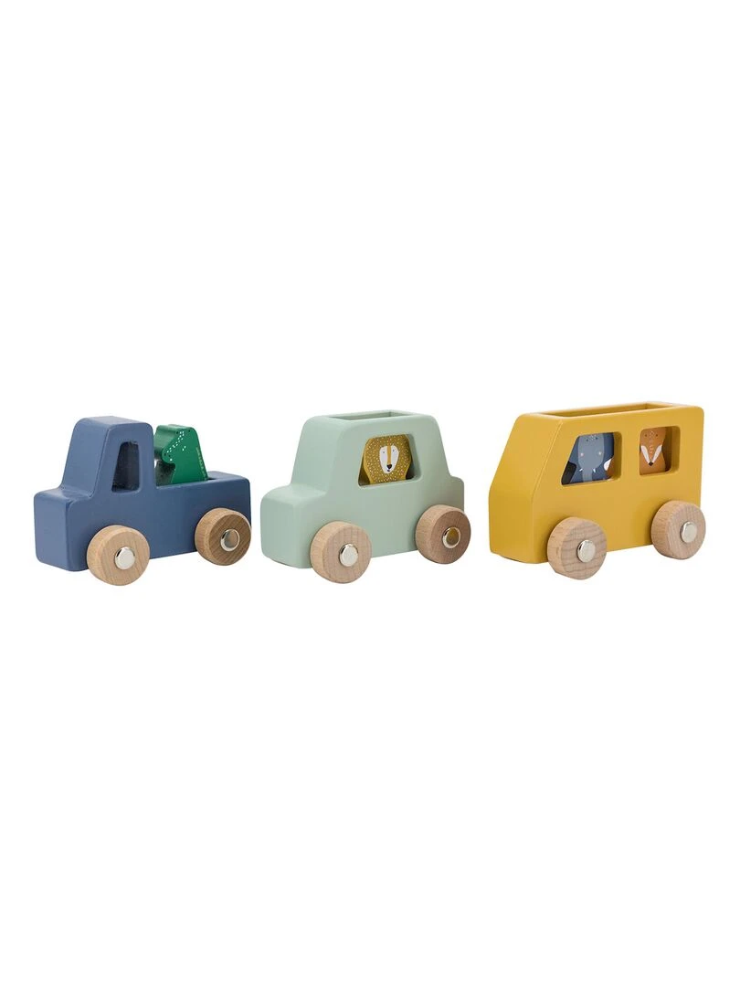 Lot de 3 voitures animaux en bois N/A