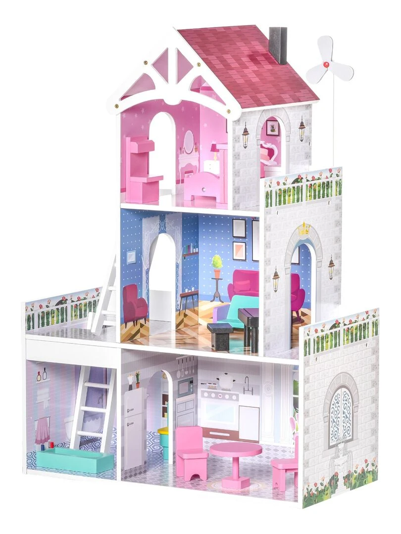 Maison de poupée 3 étages jeu d'imitation multi équipement N/A