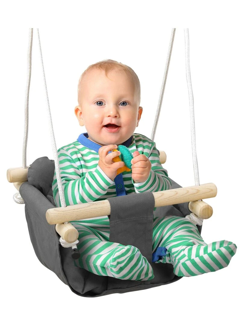 Balançoire bébé réglable accessoires inclus coton gris Gris