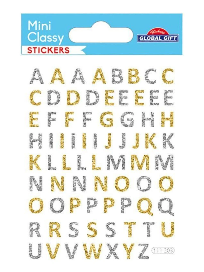74 Stickers Alphabet Paillettes or et argent 0 7 cm N/A