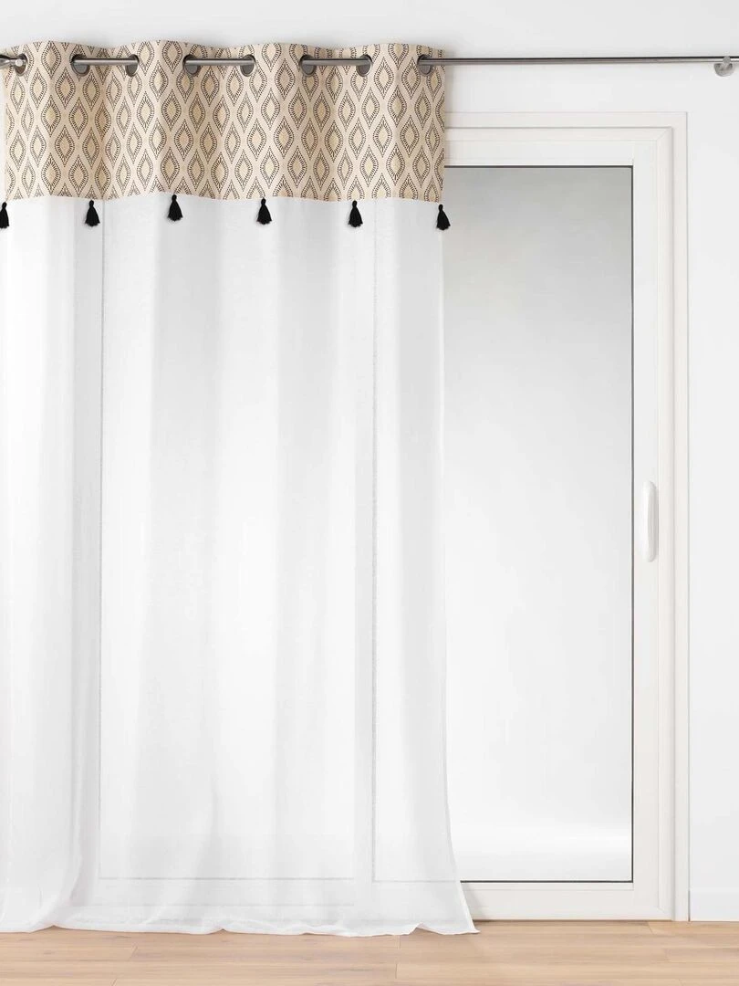Voilage à top imprimé et pompons Beige