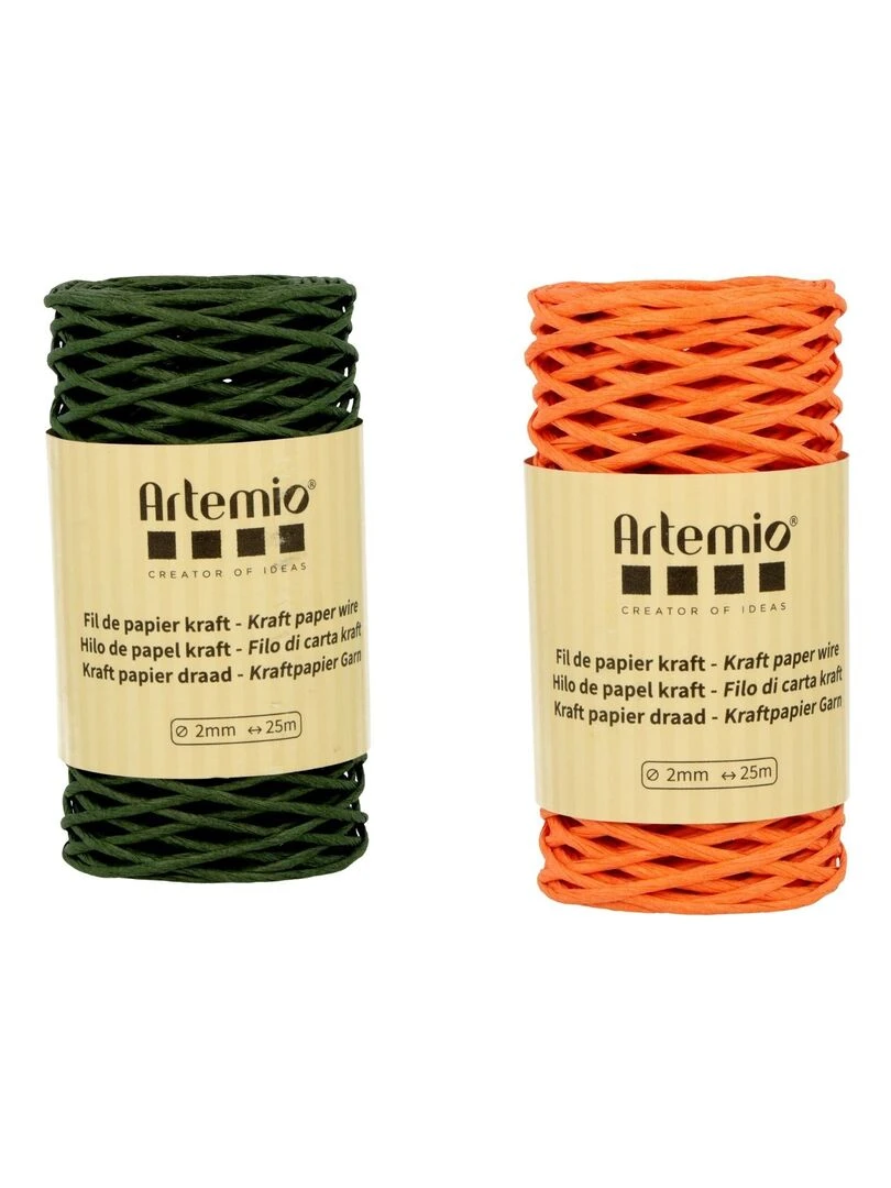 2 bobines fil kraft vert bouteille/orange 2mm x 25 m N/A
