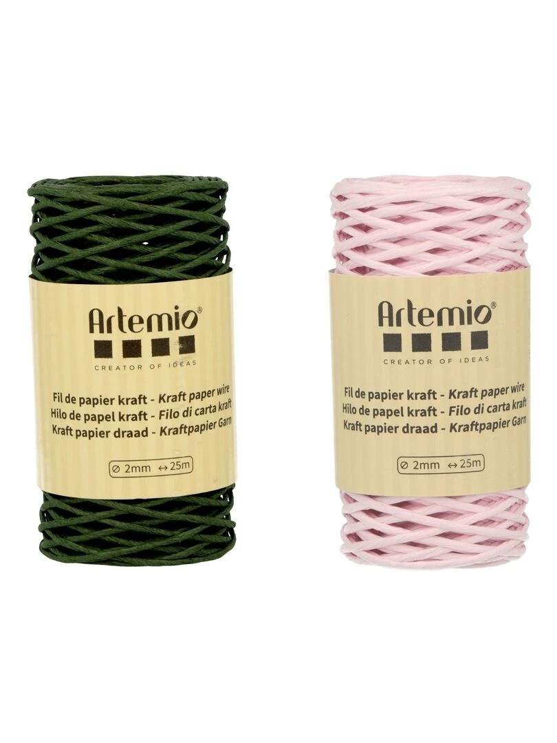 2 bobines fil kraft vert bouteille/rose 2mm x 25 m N/A