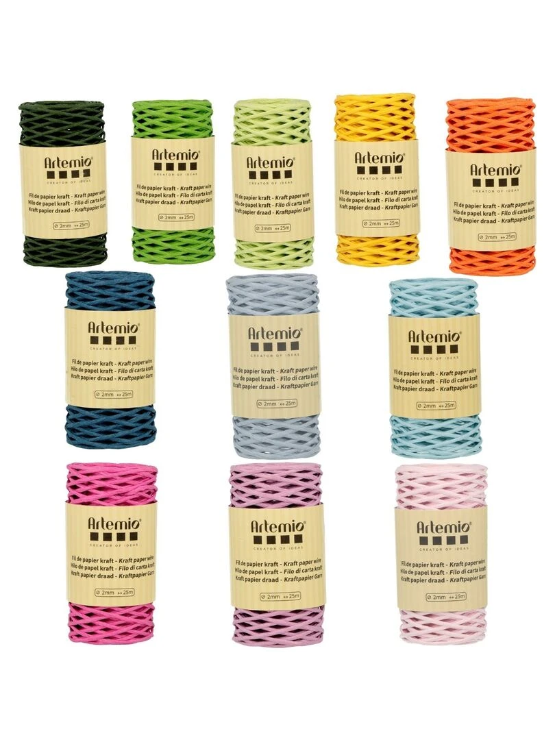 11 bobines de fil de papier kraft 2mm x 25 m N/A