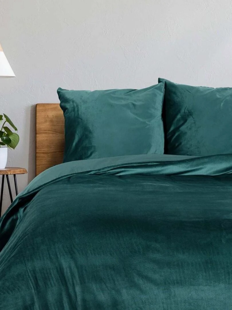 Housse de couette + taie(s) velours uni Velina émeraude Vert