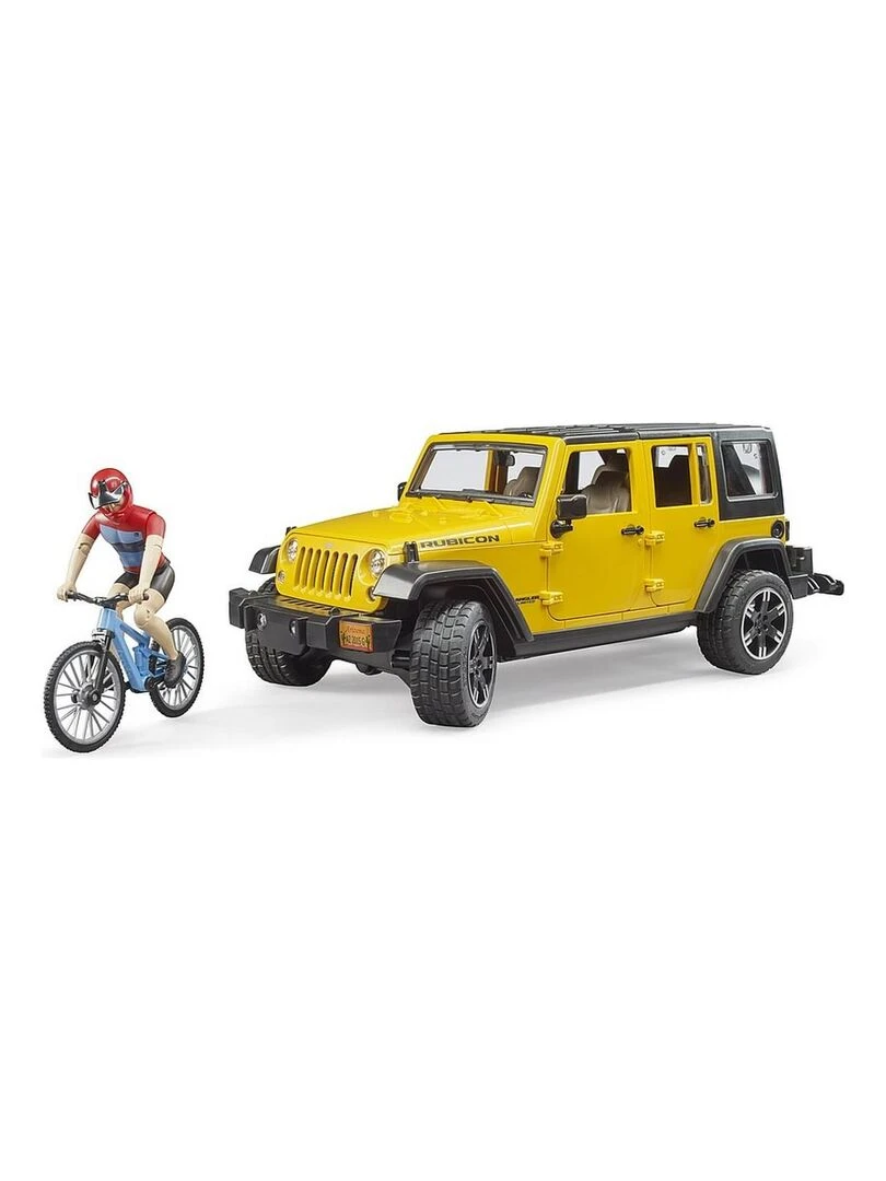 Jeep Wrangler Rubicon avec cycliste et vélo tout terrain N/A