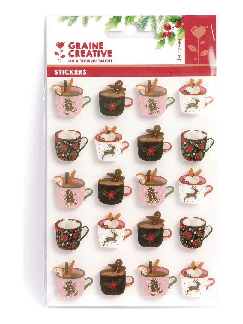 20 stickers 3D gourmands chocolat de Noël N/A