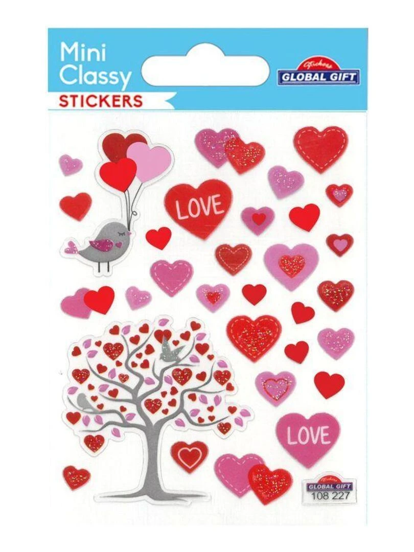 Stickers Arbre et coeurs Paillettes 7 5 x 10 cm N/A