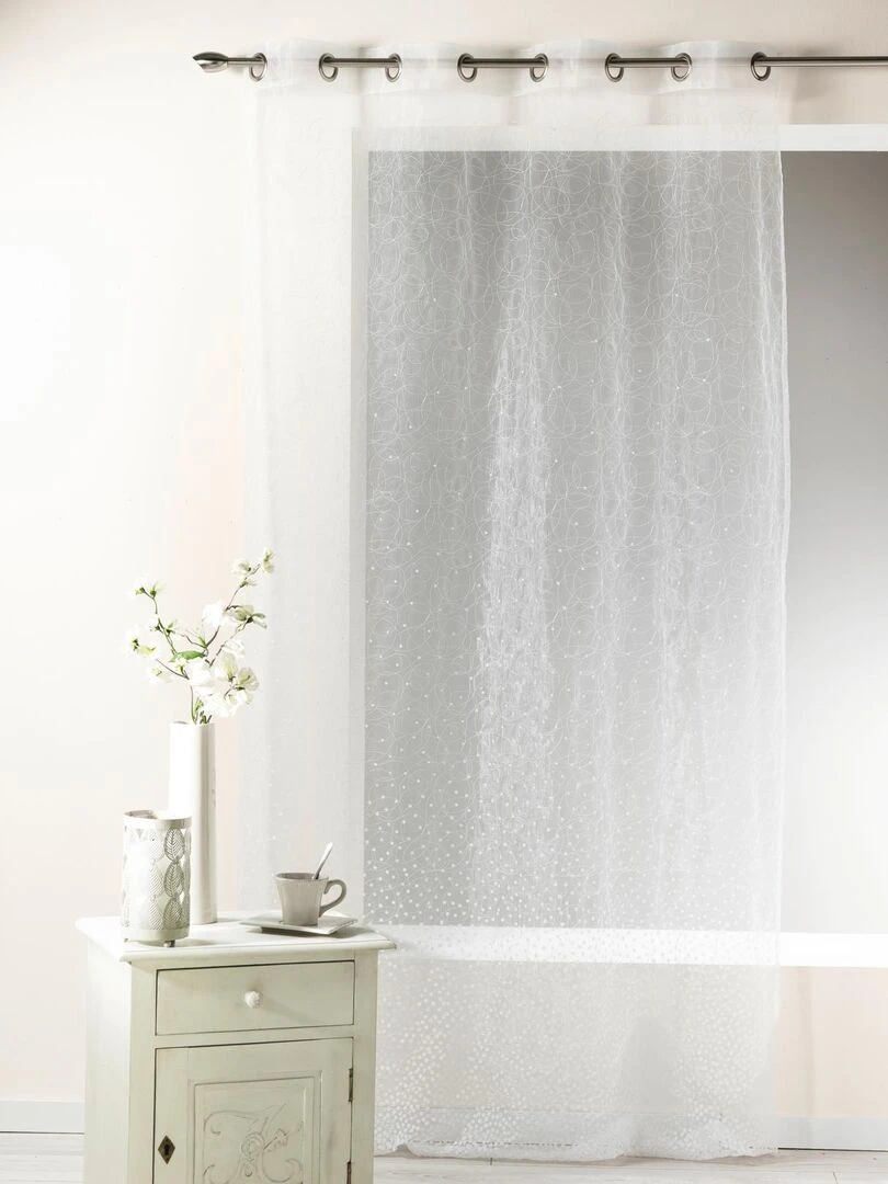 Voilage en organza dévoré et brodé Blanc