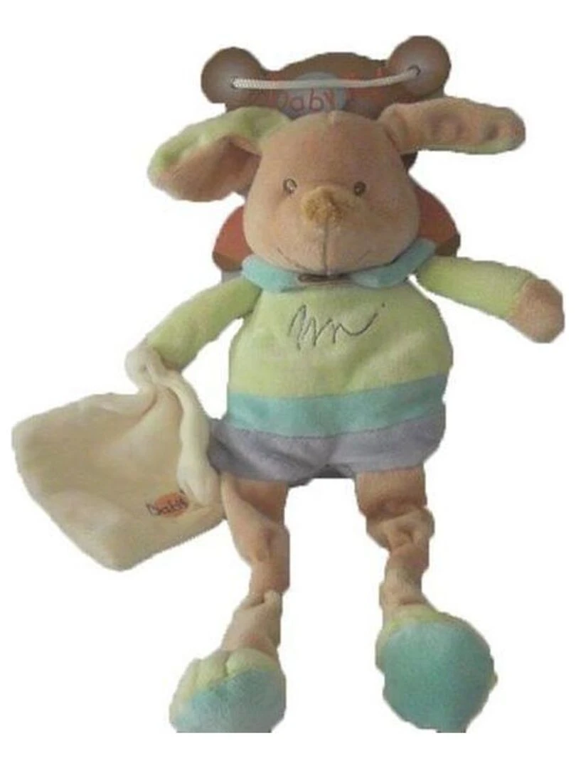 doudou Babynat Chien Blanc nœud dans la bouche Pantin Blanc