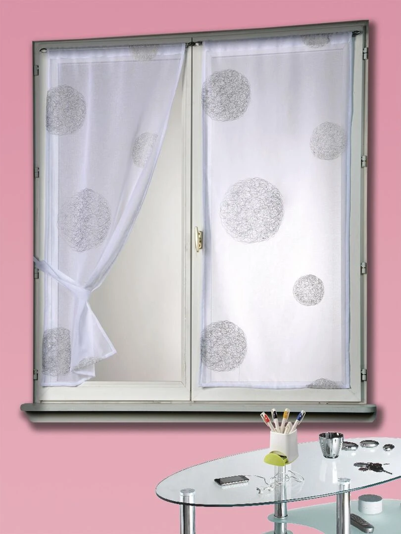 Vitrage Blanc Brodé 'Ronds Mêlés' Blanc