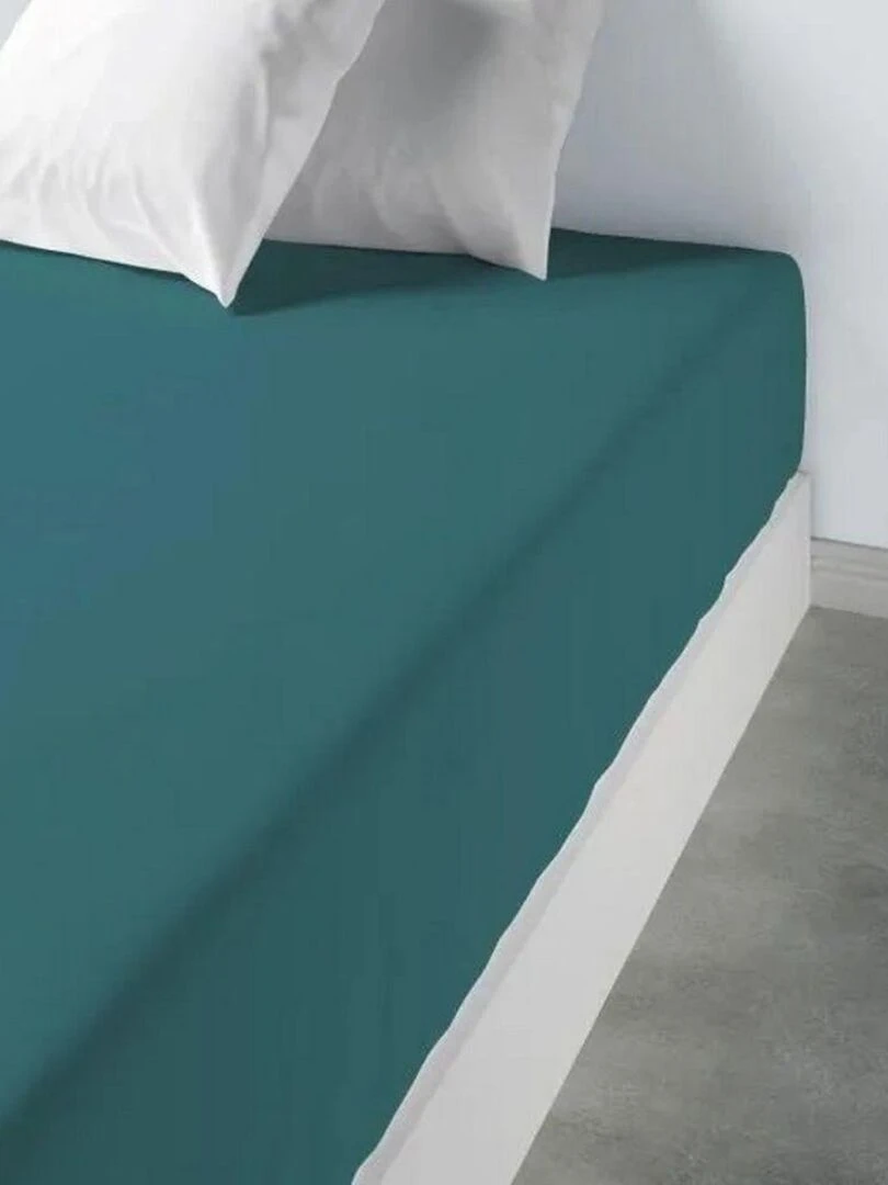 2 Draps housse 80x200 +35 cm 100% Coton 57 fils Bleu lagon