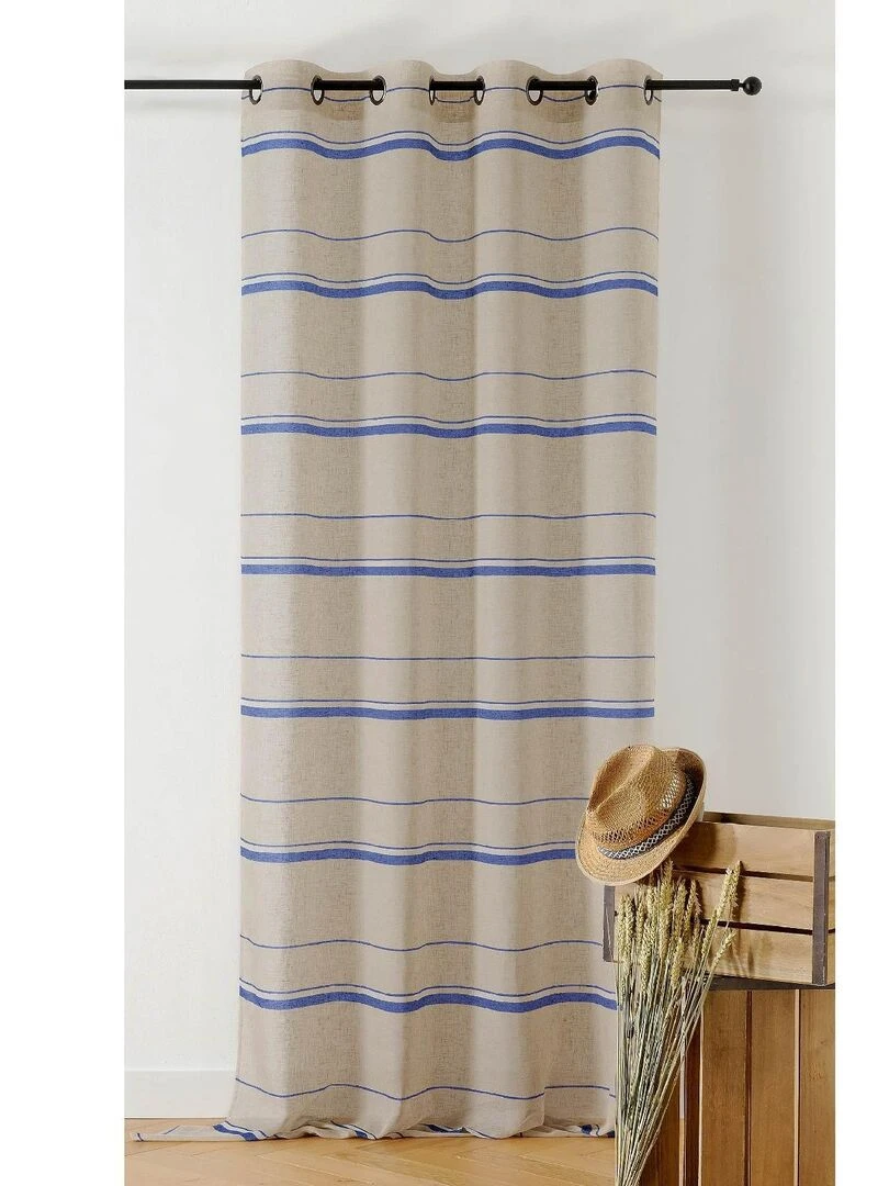Voilage tamisant esprit linge d'antan Bleu