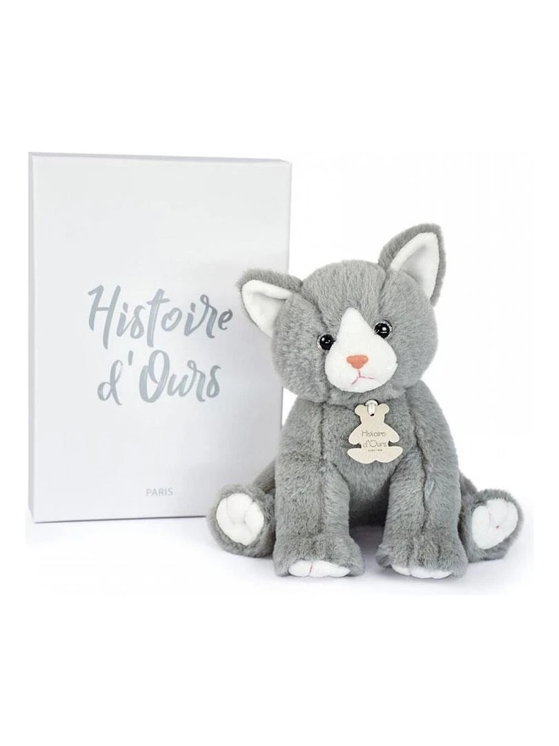 Coffret peluche Bébé chat gris perle (18 cm) Gris