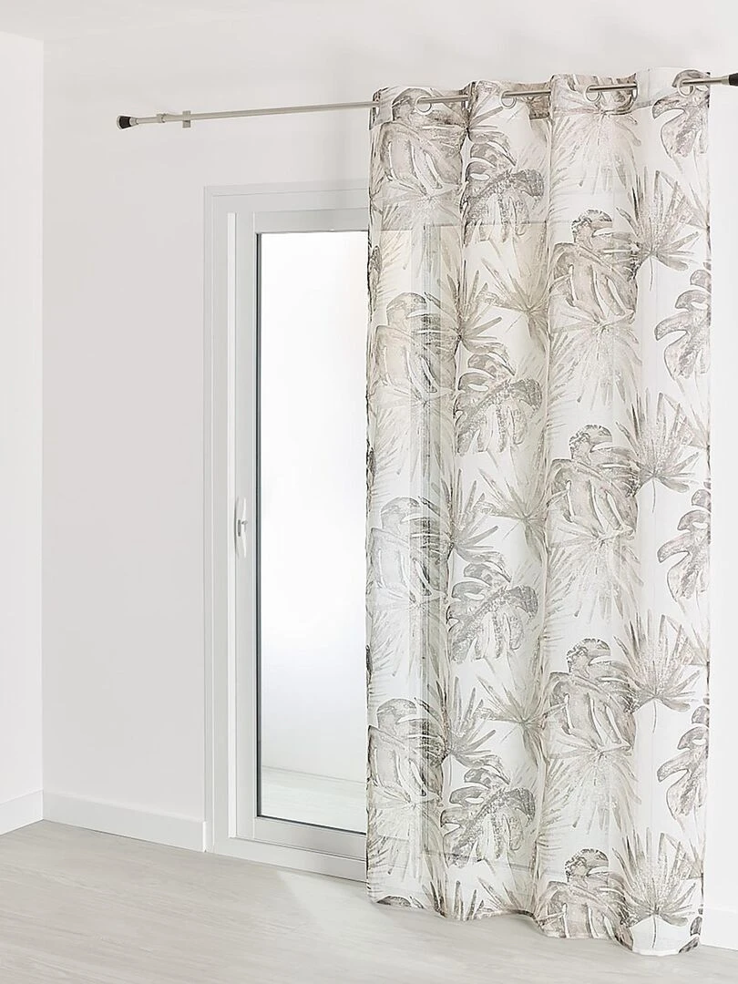 Voilage en étamine imprimé tropical Taupe