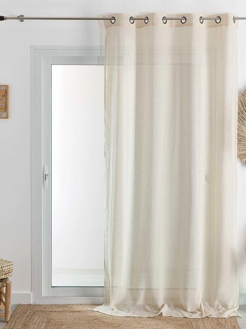 Voilage tamisant uni à fines rayures Beige
