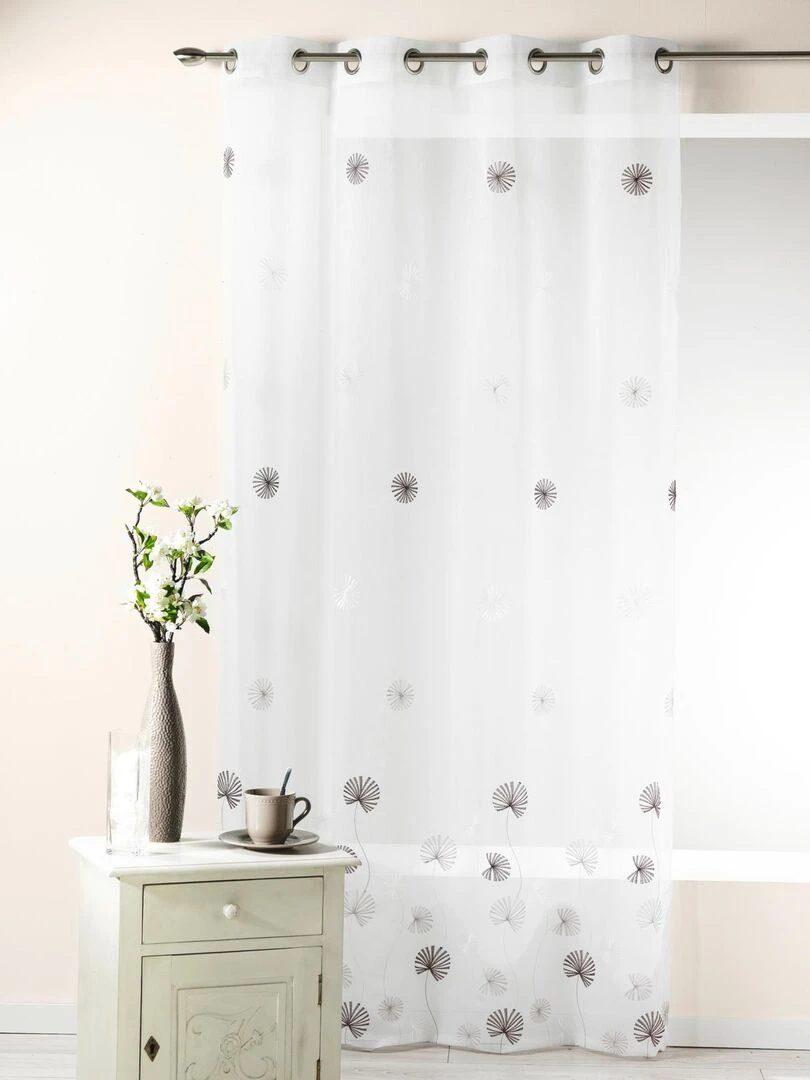 Voilage en étamine brodée fantaisie nature Taupe