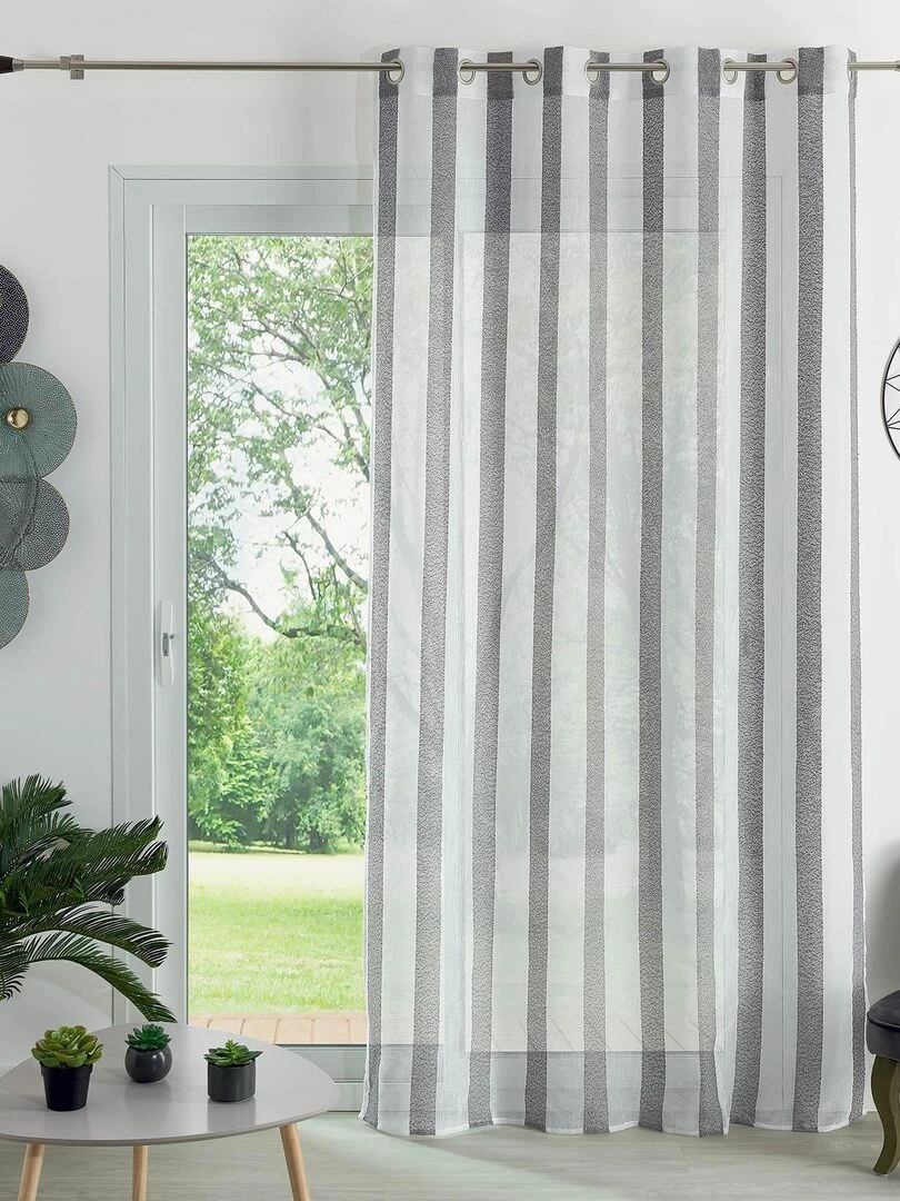 Voilage tamisant en étamine à rayures bicolores Gris clair