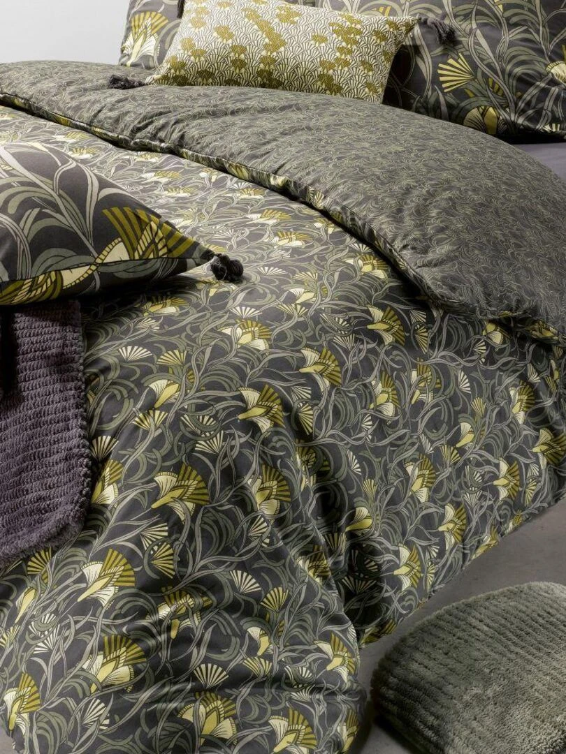 Housse de couette + taies d'oreiller coton 57 fils Liana Vert