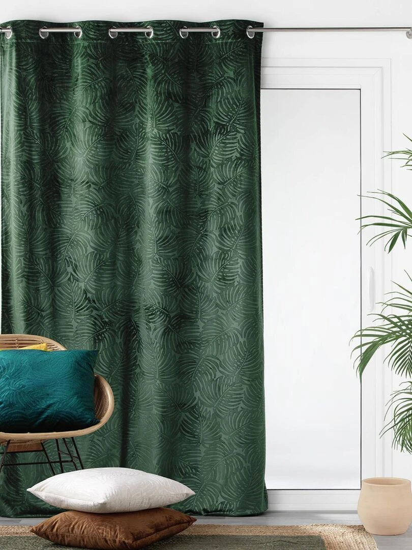 Rideau occultant en velours feuilles de monstera Vert