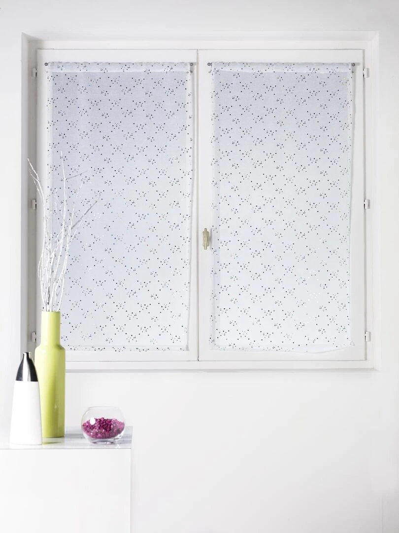 Vitrage à la Paire en Etamine Motifs Petits Points Blanc