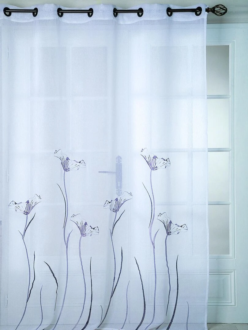 Voilage en Etamine bordé 'Fleurs' Blanc