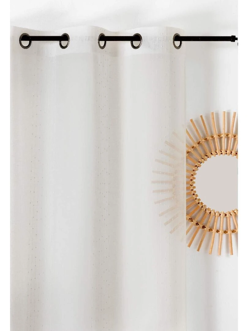 Voilage délicat à fines rayures et pompons Beige