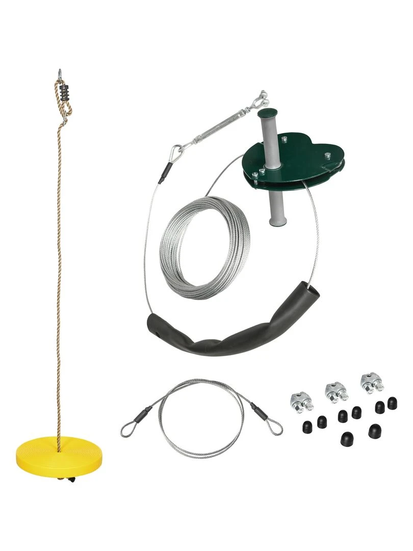 Kit complet tyrolienne 25 m acier PE Jaune