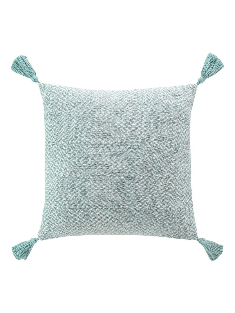 Coussin pompons coton tisse Louissette Vert