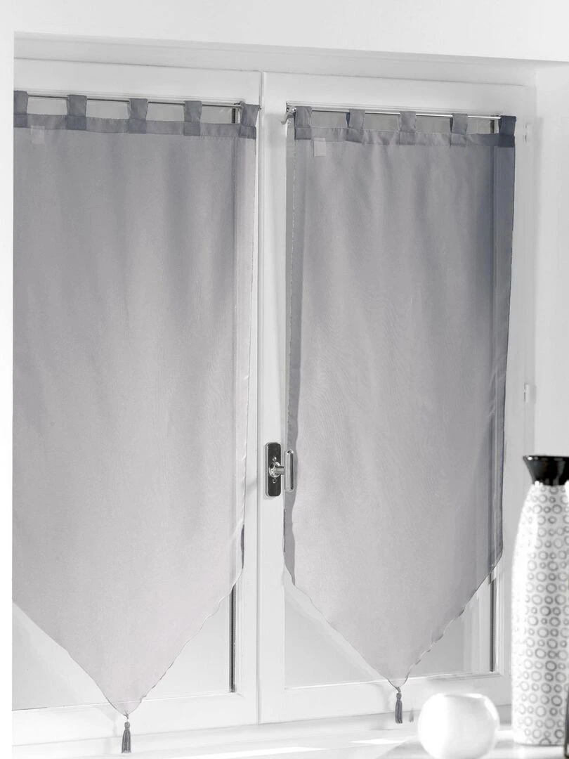 Paire Voilage pompons Collection Voiline Gris