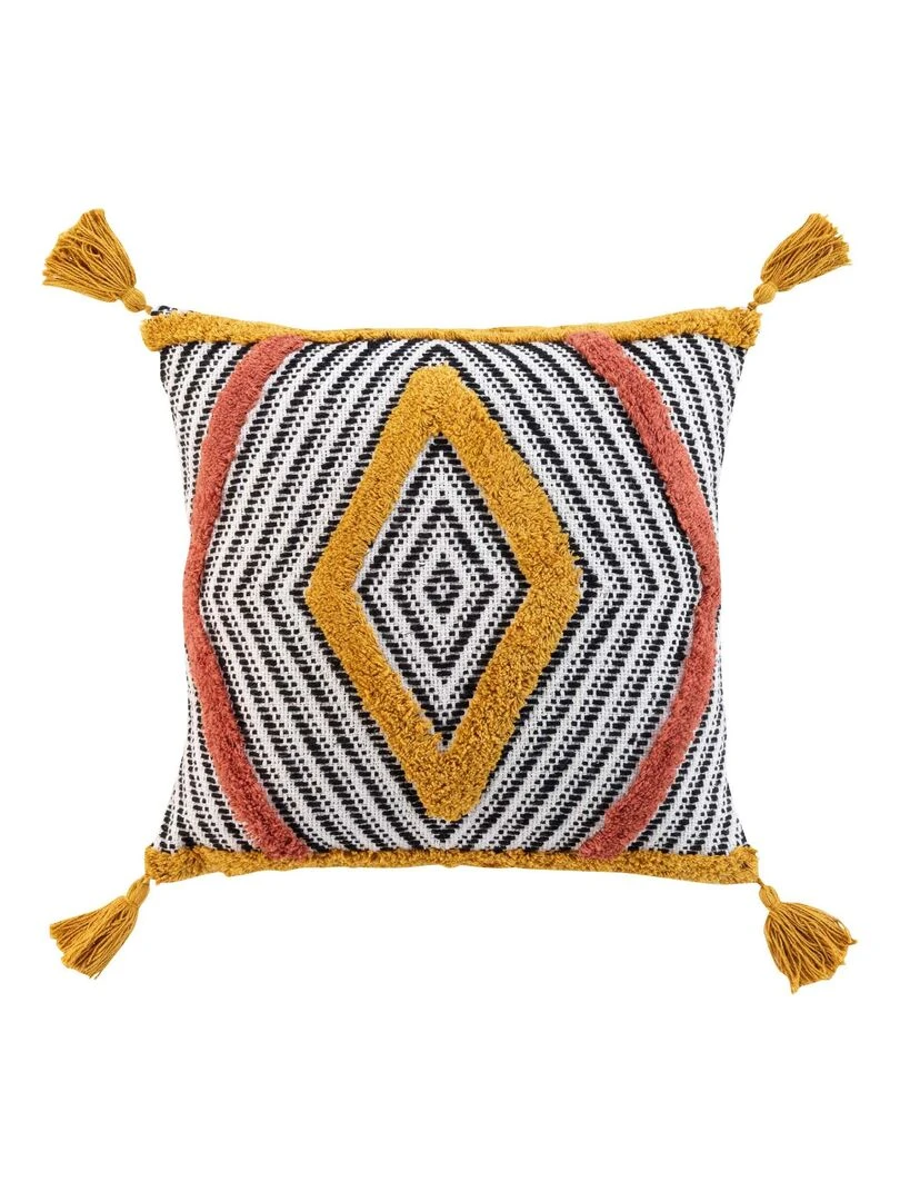 Coussin coton pompons Teranga Marron