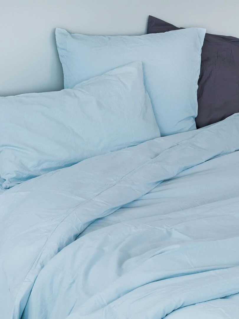 Taie d'oreiller en coton lavé Bleu ciel