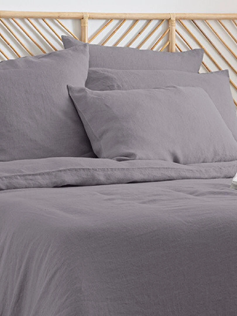Taie d'oreiller en coton lavé gris anthracite