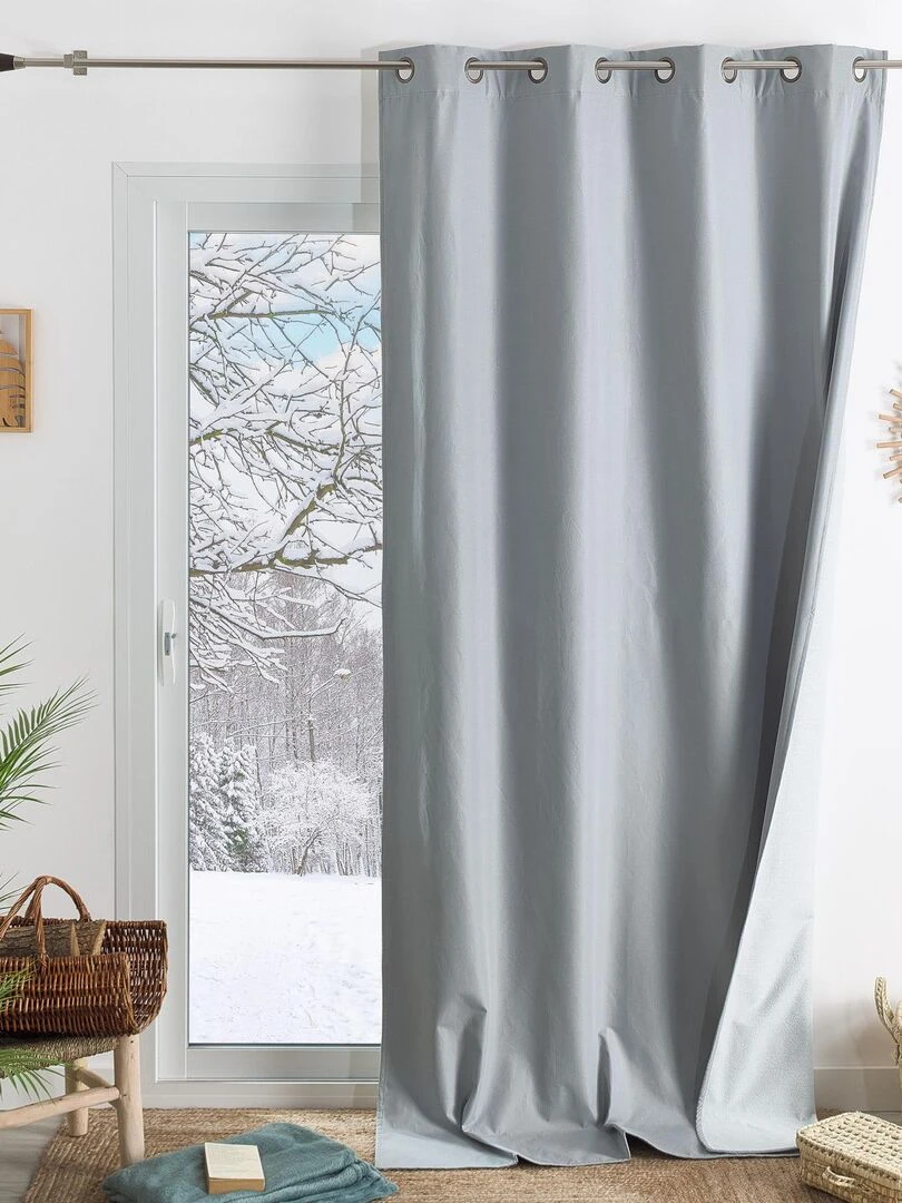 Rideau occultant et isolant doublé de polaire Bleu canard