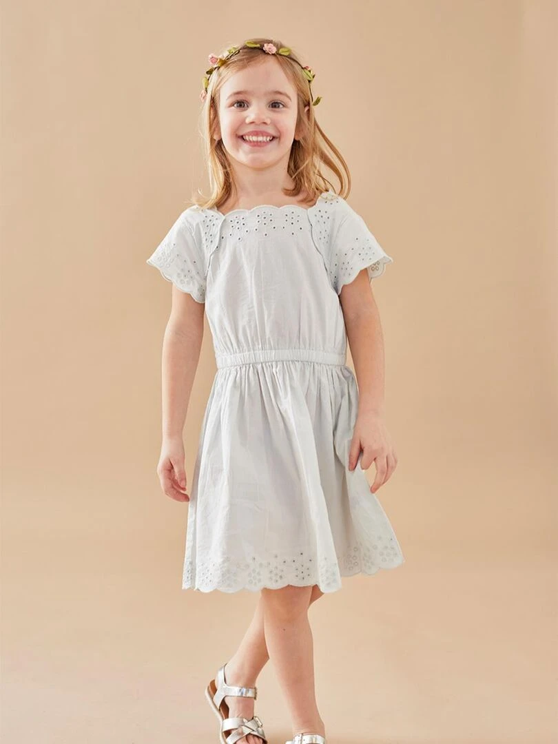 Robe Florale En Coton Pour Bébé Fille manches courtes Blanc
